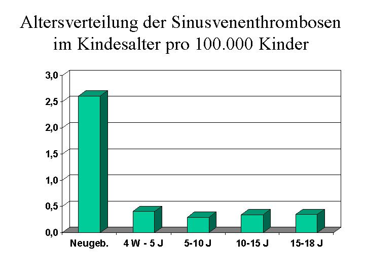 - Altersverteilung der Sinusvenenthrombosen im Kindesalter pro 100.000 Kinder
